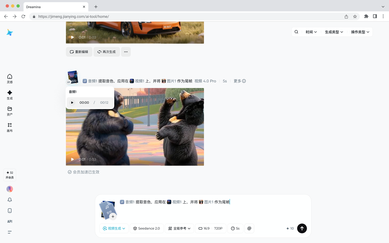 Seedance 2.0's extension feature allows you to expand existing videos in either direction, creating longer sequences while maintaining visual consistency.